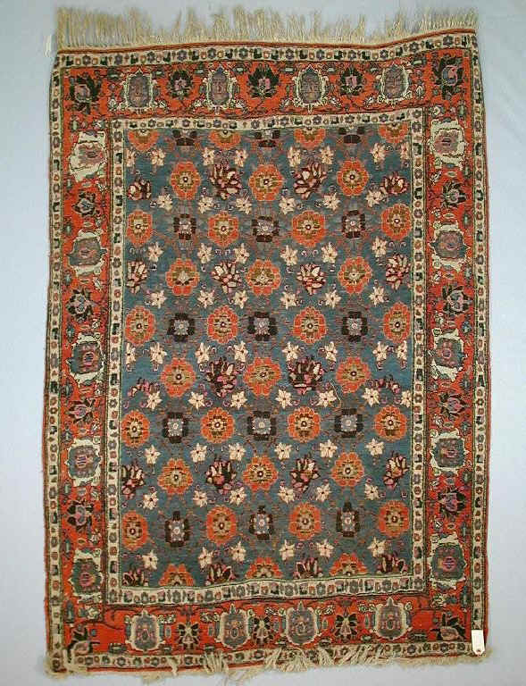 Minta: általában egyetlen medalion és körülötte spirál virág minta.