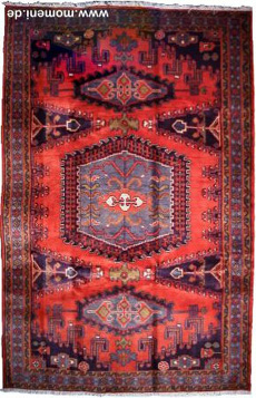 Minta: geometrikus minta ismétlődő medalionokkal főleg a futóknál. Olyan törzsek által csomózott perzsaszőnyeg, akik átmennek Váramin falván vagy ott élnek.